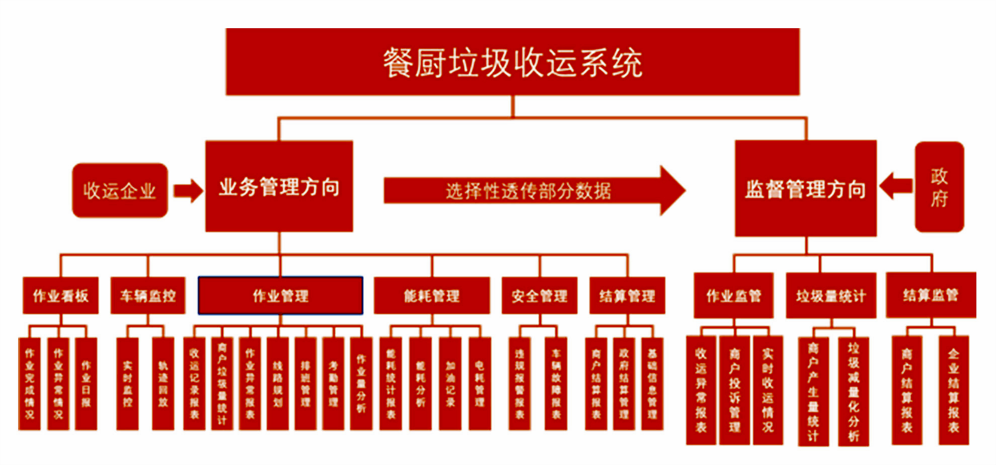 为政府提供一套“全天候、无死角、公正、透明、便捷”的监管工具,为企业收运体系提供“高效、便捷”的管理工具,帮助管理者及时发现问题,提升收运效率,降低运营成本,为商户提供“公正、透明、便捷”的查询工具。