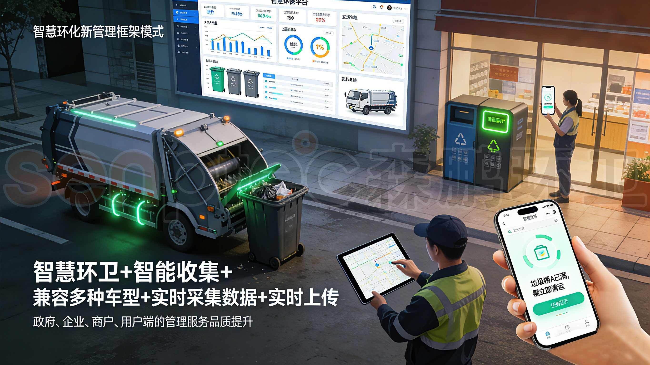 森鹏软硬件一体研发实力,创新、智能、高效,森鹏科技依靠自身软硬件一体研发优势,以物联网思维为核心驱动,独立自主研发出“EVOS智慧环卫2.0管理平台”,餐厨垃圾收运系统是该平台核心子系统之一。